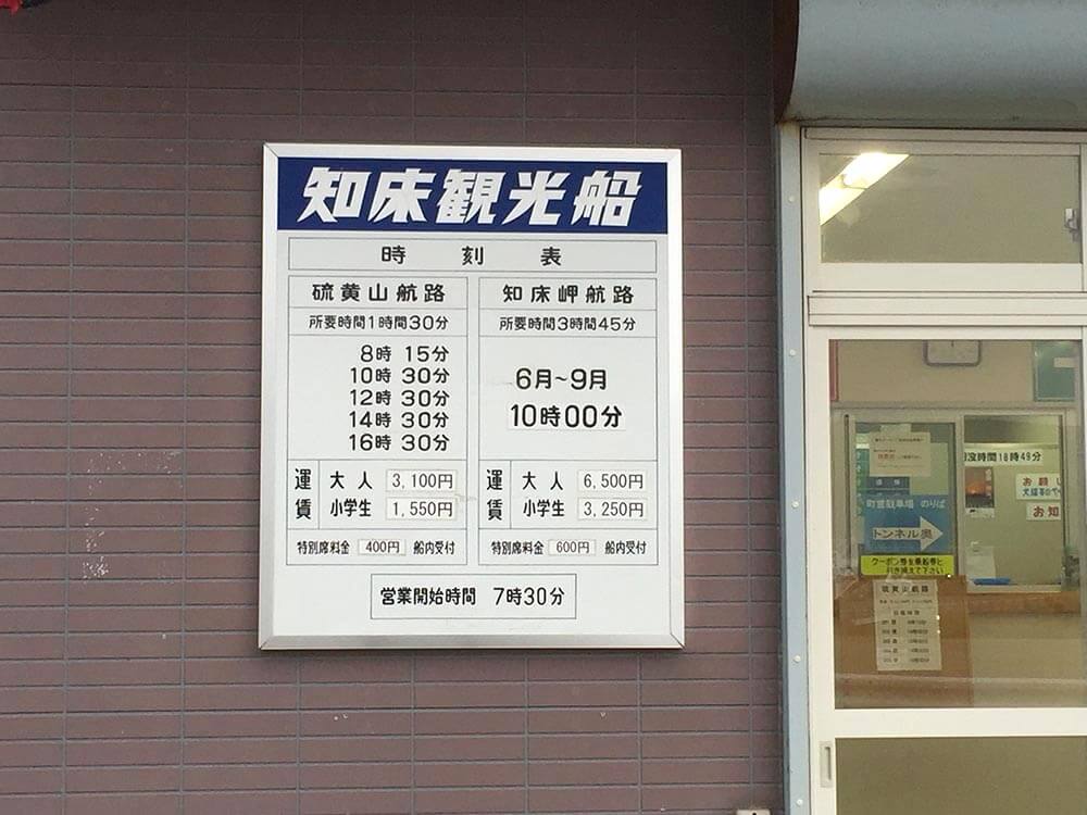 「知床觀光船」有兩段路線,最長要3個多小時,主要係由海上睇返知床八景既風景及生態,淡季時只需開船15分鐘前買飛
