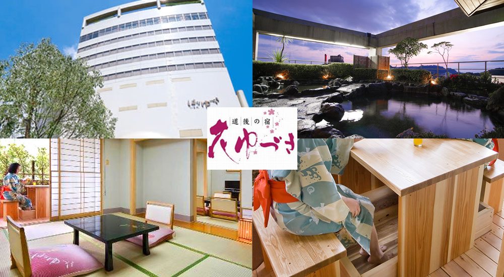 位於愛援縣道後溫泉區,離伊予鐵道電車「道後溫泉」站約6分鐘步程,酒店前面便是千語千尋取景地「道後溫泉本館」及溫泉步行街。酒店提供和式及和洋式客房,當中10樓的和洋式客房房內設有西式露天風呂,9樓部份和式房設有房內露天足湯,9至10樓房間亦可於「飛梅」享用高級懷石料理,最小的和式房約有17平方米(183尺)。