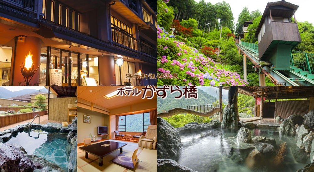 位於徳島県三好市祖谷川河畔,離「大歩危」站約有30分鐘車程,酒店提供免費送迎至「大歩危」站,可搭露天浴池纜車,往下約170公尺至酒店溪邊露天溫泉,泉水為地上自然湧出的溫泉。晚膳為阿波牛鐵板燒、美姬火鍋、懷石料理等,部份客房設有私人露天風呂或展望風呂,最小的和式房約有13平方米(140尺)。