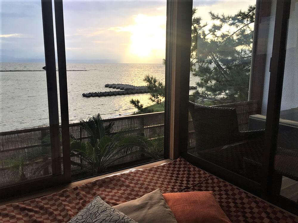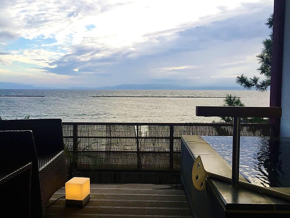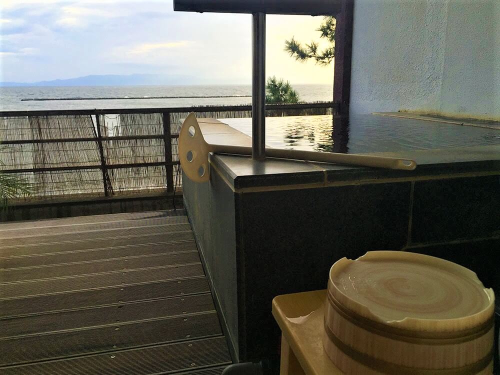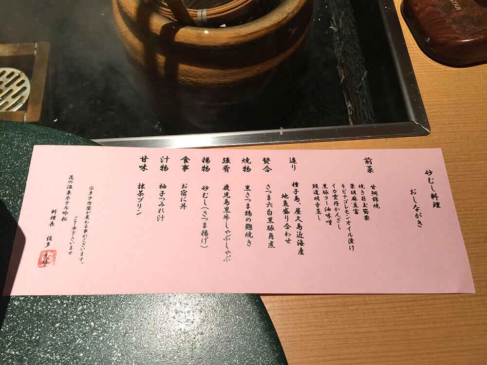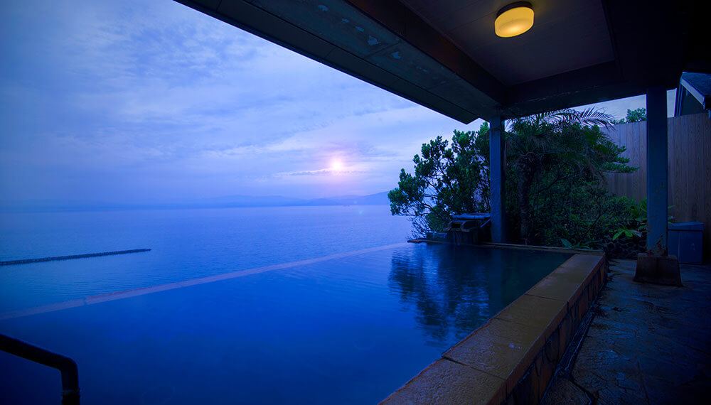 2015年翻新,離「指宿」駅5分鐘車程,天台有無邊露天溫泉,館內雖沒設有砂蒸溫泉,但酒店外便是「砂樂」砂蒸溫泉,晚膳為時令懷石料理或黑毛牛/黑豚/黑薩摩雞黑會席,部份客房設有海景私人露天風呂,最小的客房約有10平方米(108尺)。
