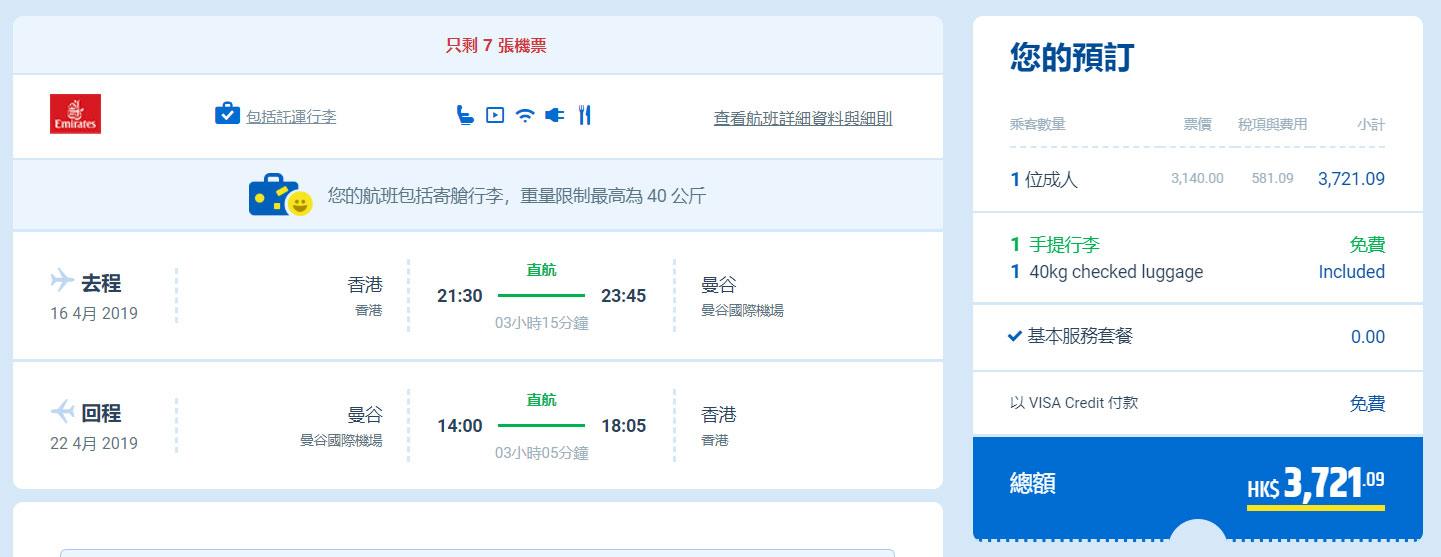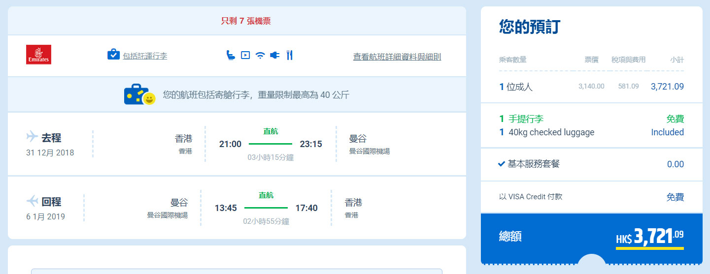 嘩!阿聯酋航空 經濟艙超抵之外,商務艙都好吸引,香港 飛 曼谷 商務艙 HK$3,140起(連稅HK$3,721),可以坐A380雙層機,商務艙位於上層,夠寬敞,仲係Flat bed 180度平躺座椅。Check過跨年如12月31日飛、1月6日返,或者復活節4月16日飛、22日返都有平,商務艙已包40kg行李寄艙,唔怕買爆喼。
