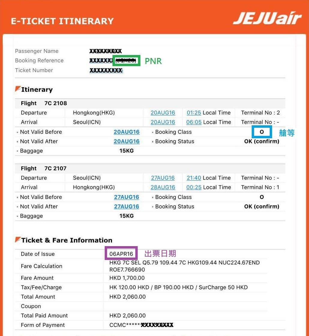 濟州航空自 2016 年 5 月 1 日起所發售之機票,將以機票艙等區分免費寄艙行李限額。