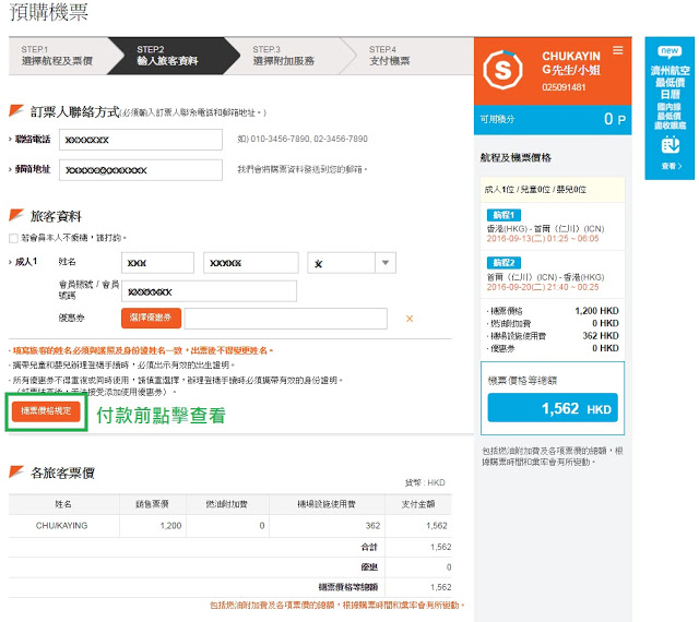 溫馨提示:於網上購票付款前仔細查閱機票規定。