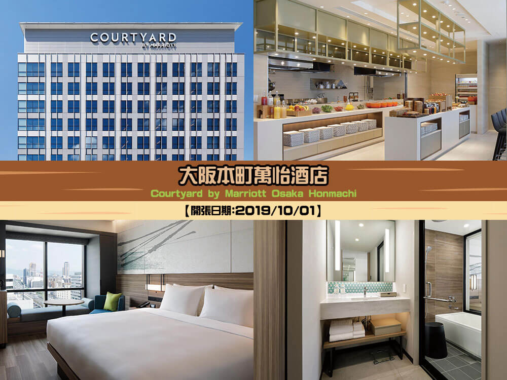 萬豪旗下關西第二間Courtyard酒店!1分鐘至地鐵「堺筋本町」駅,7分鐘至地鐵「本町」駅,有大浴場與露天浴池,客房設計簡約,最小的客房約24平方米(258尺)。