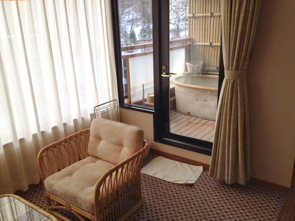 北海道-登別-溫泉酒店推介「旅亭花遊樂 」,房內設有半露天溫泉。
